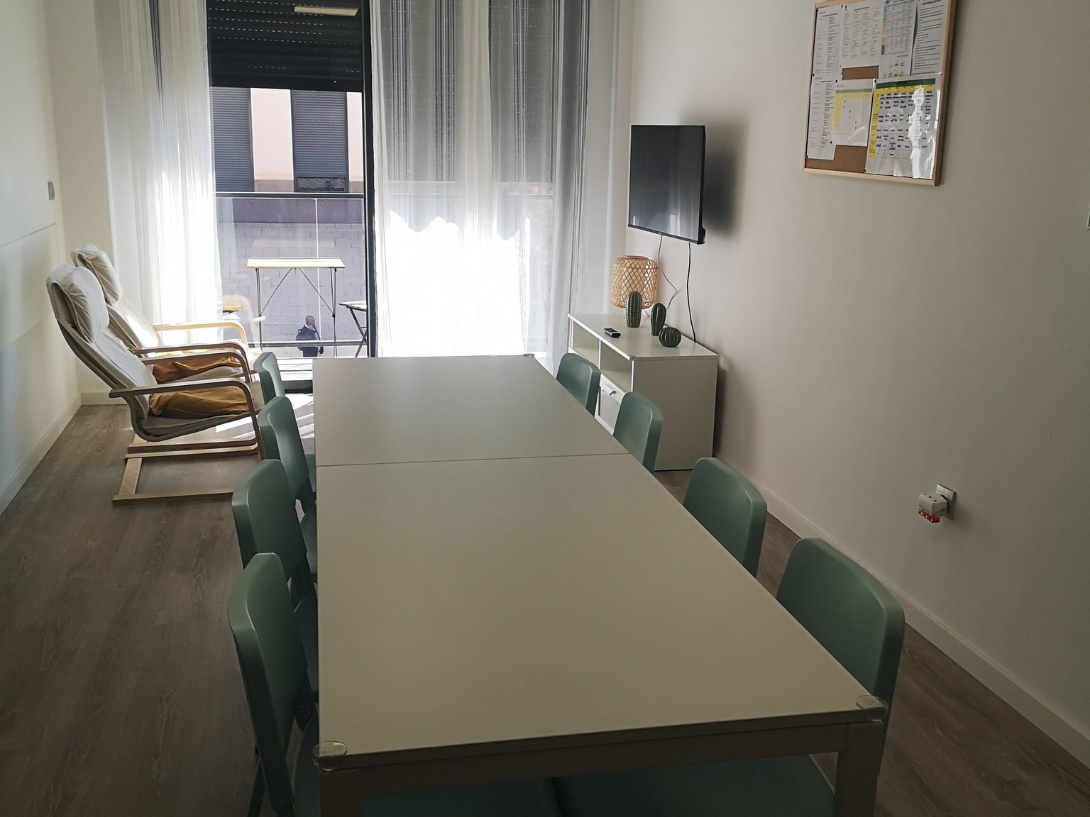 Durante el acto, se han organizado grupos para visitar la vivienda tutelada de ASOFEM, ubicada en el mismo barrio de San Fernando. Se trata de dos pisos unidos, uno de ellos adaptado a personas con movilidad reducida, que el Ayuntamiento de Lorca cedió a la asociación y que se encuentran en uso desde el verano de 2023. Esta vivienda cuenta con capacidad para ocho personas y en él residen seis personas con plaza concertada con el IMAS, que realizan vida en común bajo la supervisión 24 horas de un monitor. Las personas que viven aquí desarrollan a diario tareas de convivencia en grupo y rotatorias como limpieza, preparación de alimentos y actividades lúdicas.